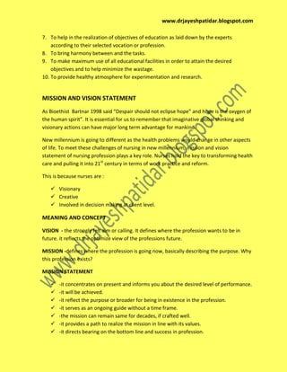 Aims And Objectives Of Nursing Management Vision And Mission Stateme